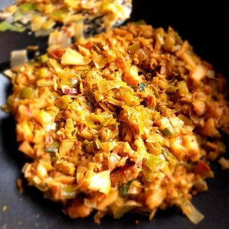 We started by caramelising the chopped leek and apple in butter—low, slow, and golden. I’d asked if there was a mortar and pestle around, half-expecting a blank look. But no—my friend instantly knew what I meant and produced one shortly after. In went the fennel seeds, crushed until they released that unmistakable aniseed perfume.