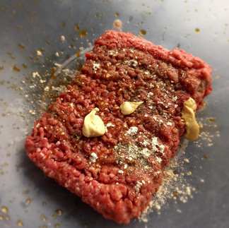 We also added Worcestershire sauce, mustard, and — let’s be honest — knowing me, I probably added some miso and soy. And just to go a bit extra, I made a last-minute suggestion to put cheese inside the patty when shaping.